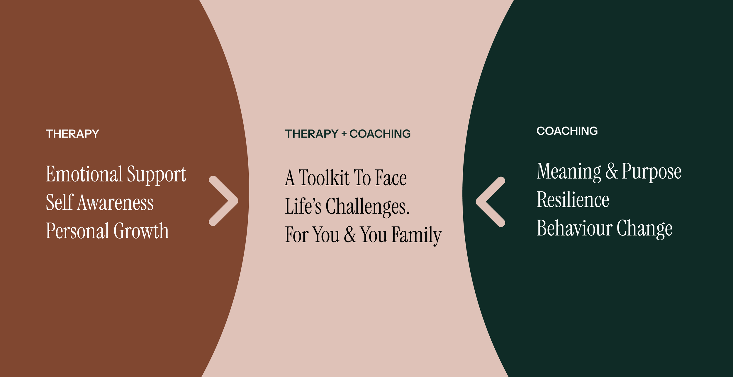 Our unique approach combines the most effective elements of therapy and coaching. Therapy will give you a deeper understanding of your experiences and increase your awareness about what you want to achieve, while coaching will provide you with the confidence and skills to move forward and make the changes you need.